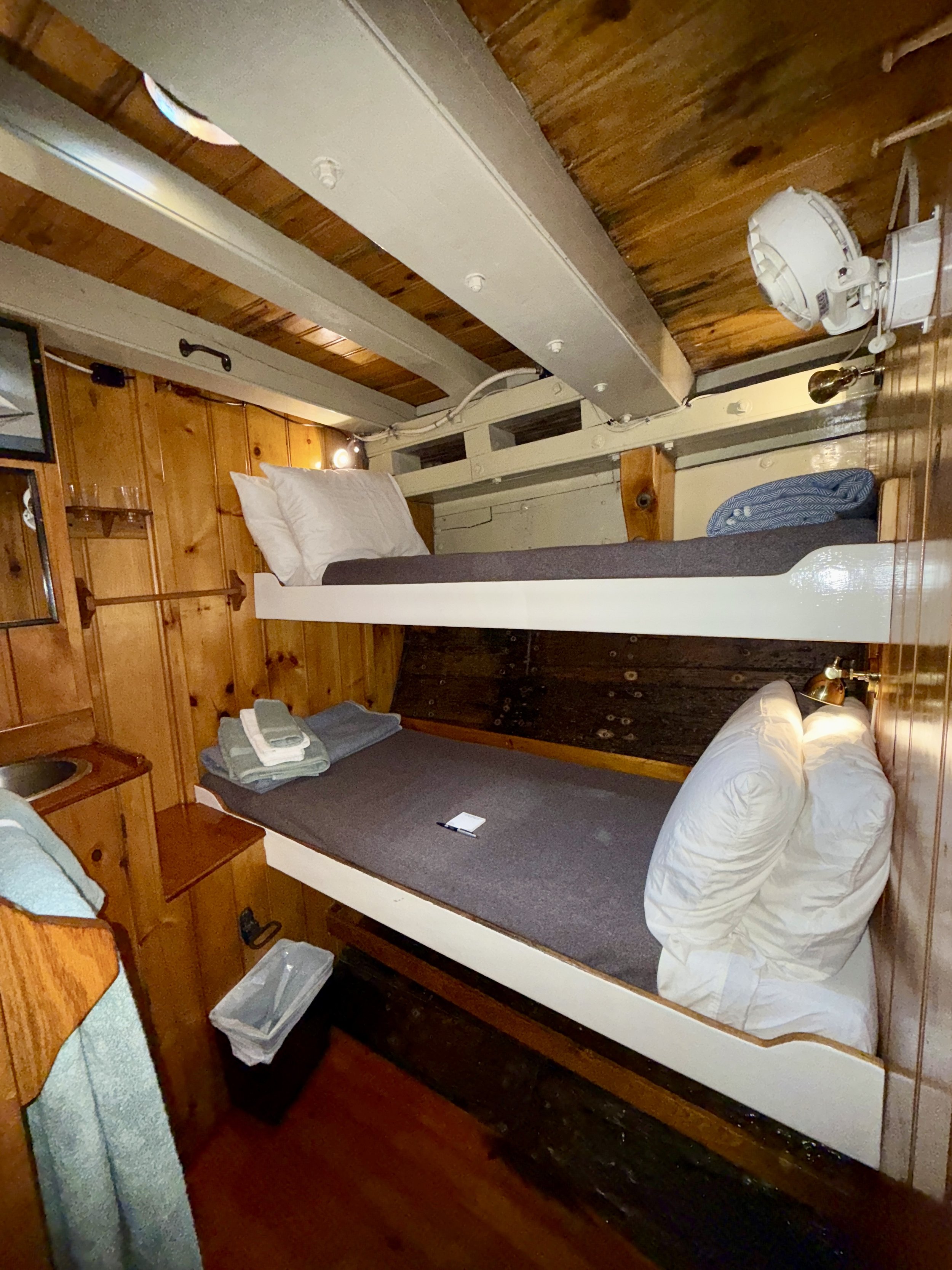 Each cabin aboard the American Eagle is equipped with reading lights, a fan, a 12-volt charging outlet, and a sink with potable hot and cold water.