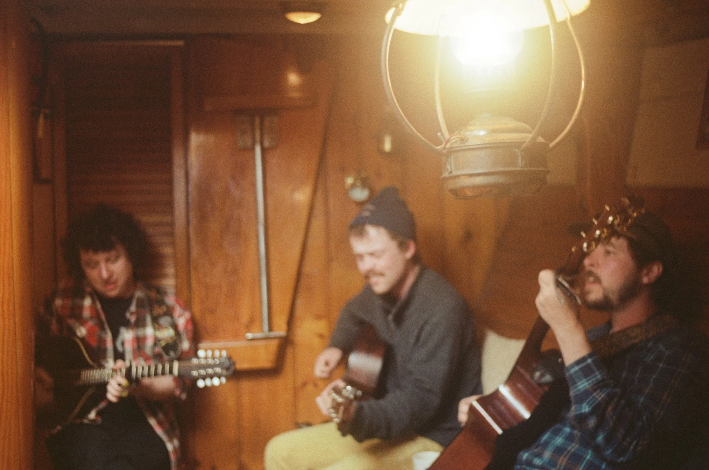 The paneled main cabin features a stove for cold nights and cushioned settees for reading or relaxing.
